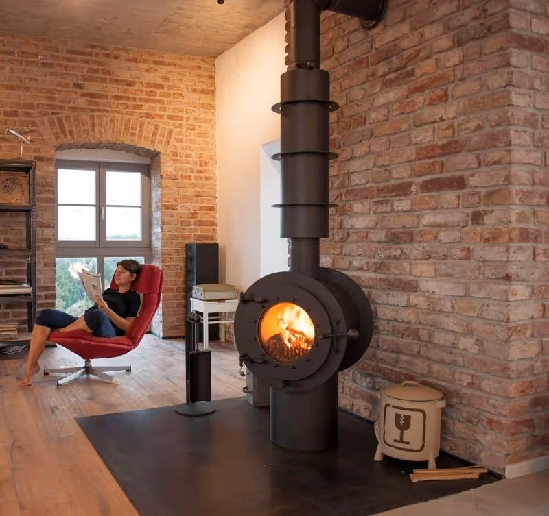 Runde Brennkammer sorgt für maximale Wärme bei minimalem Holzverbrauch, sehr wenig Rauch und sauberer Verbrennung.